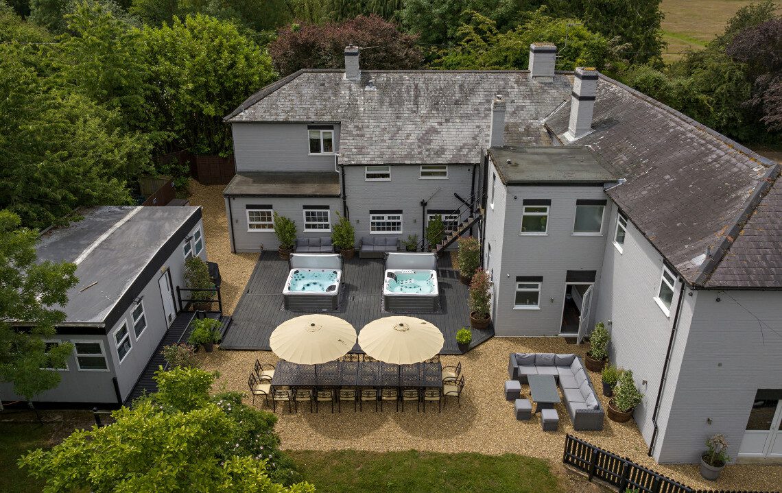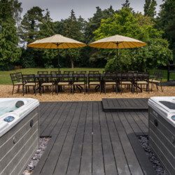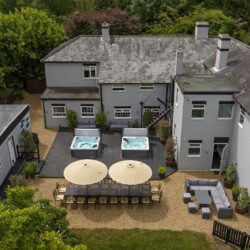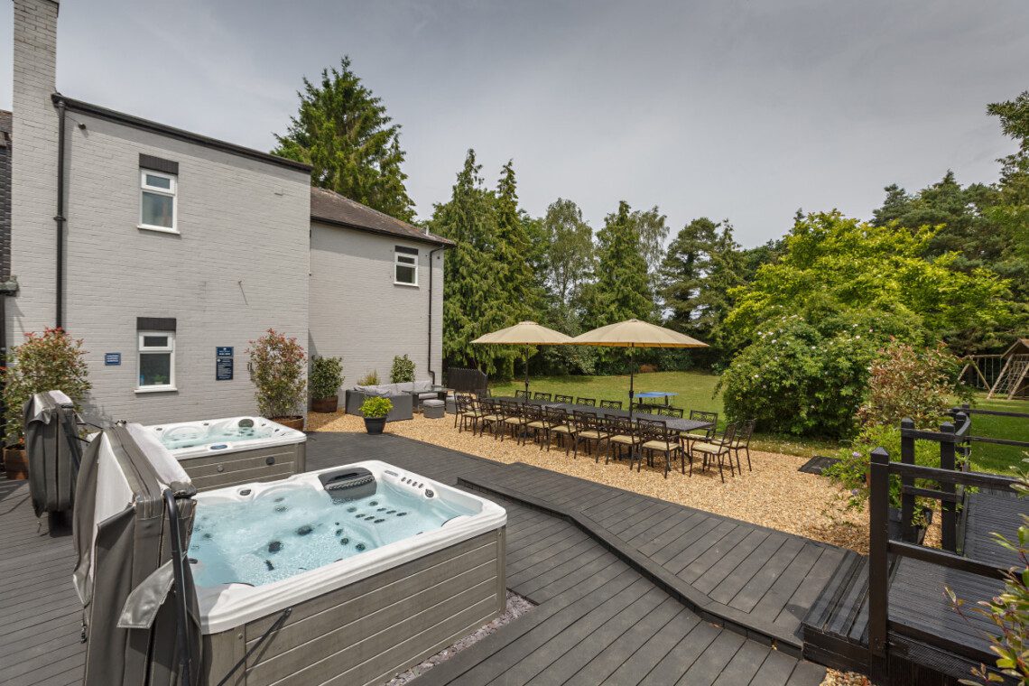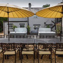 Stubbs House – Stubbs is set in an acre of private enclosed grounds amongst idyllic countryside, perfect for walking, running, and watching the beautiful wildlife. The main house has recently been renovated to a high spec, with large groups of people in mind. Facilities: 10 large bedrooms, 5 ensuites, 2 large hot tubs with waterfall features, large newly installed kitchen, games room, outside BBQ and bar area. Dog friendly. Shop/Pub: 1/2 mile.