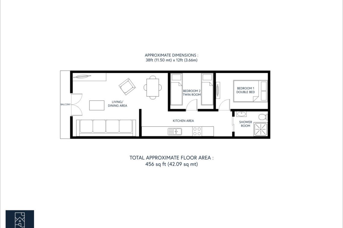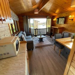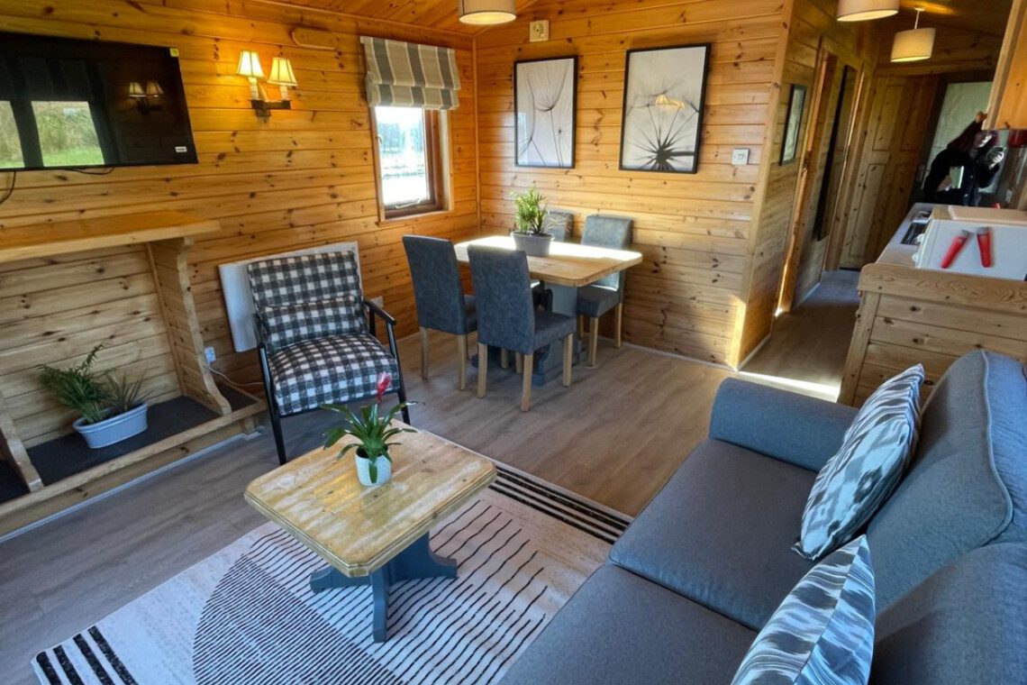 The main living area offers a deceptively spacious lounge/dining area, with tv, dining table and chairs and a fully equipped kitchen.