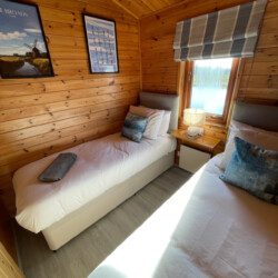 There is a double bedroom and also a twin bedroom, each sleeping 2 guests, and each with views out to the water.