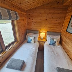 There is a double bedroom and also a twin bedroom, each sleeping 2 guests, and each with views out to the water.