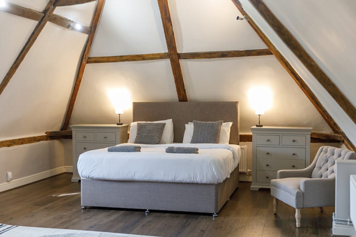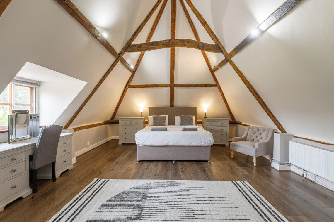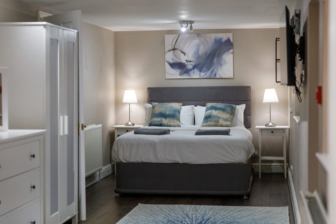 Bed 5 – Second floor – Super king bedroom with tv and ensuite shower, toilet, basin.