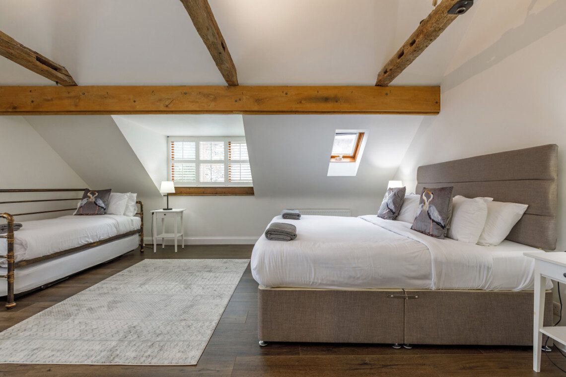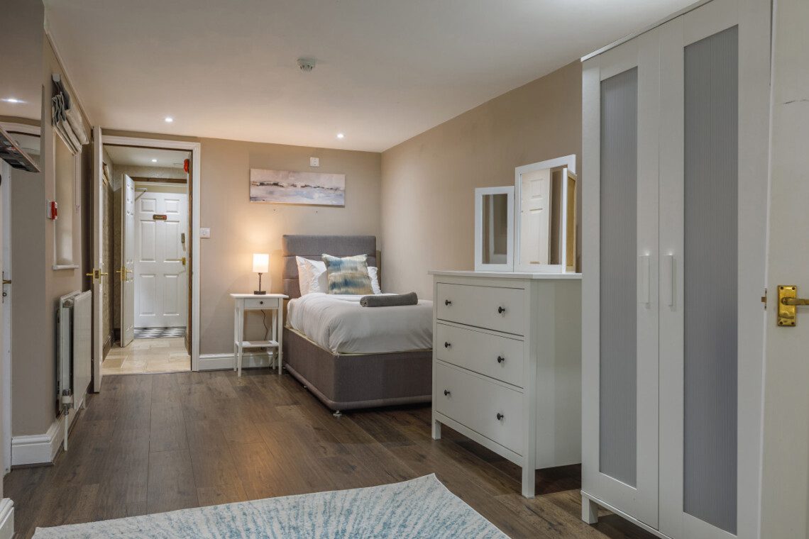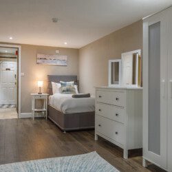 Bed 8 – Family Room – King Bed plus a single bed, walk in wardrobe, tv , ensuite with a freestanding bath, TV, wet room with shower