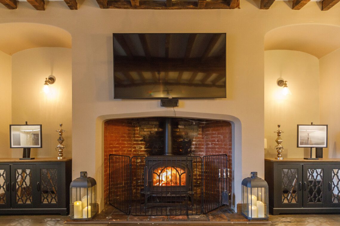 Bed 2 – First floor, super king bedroom, tv, wooden hand carved fire place, built in wardrobes, with ensuite with freestanding bath, shower, toilet and sink.