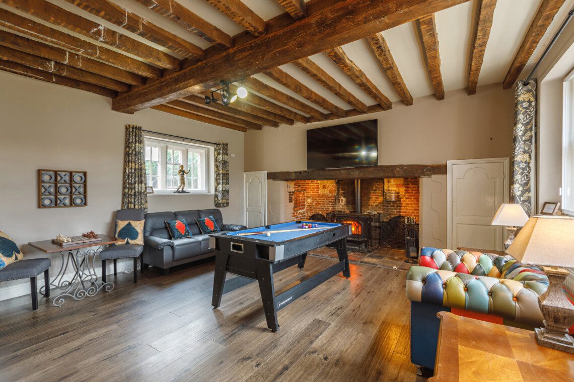 The Billiards/Games Room is situated to the right of the front door with 3 sofas, huge fire place & log burner, along with a 2 in 1 pool and air hocky table.