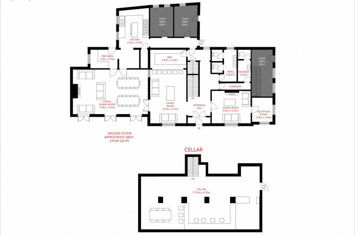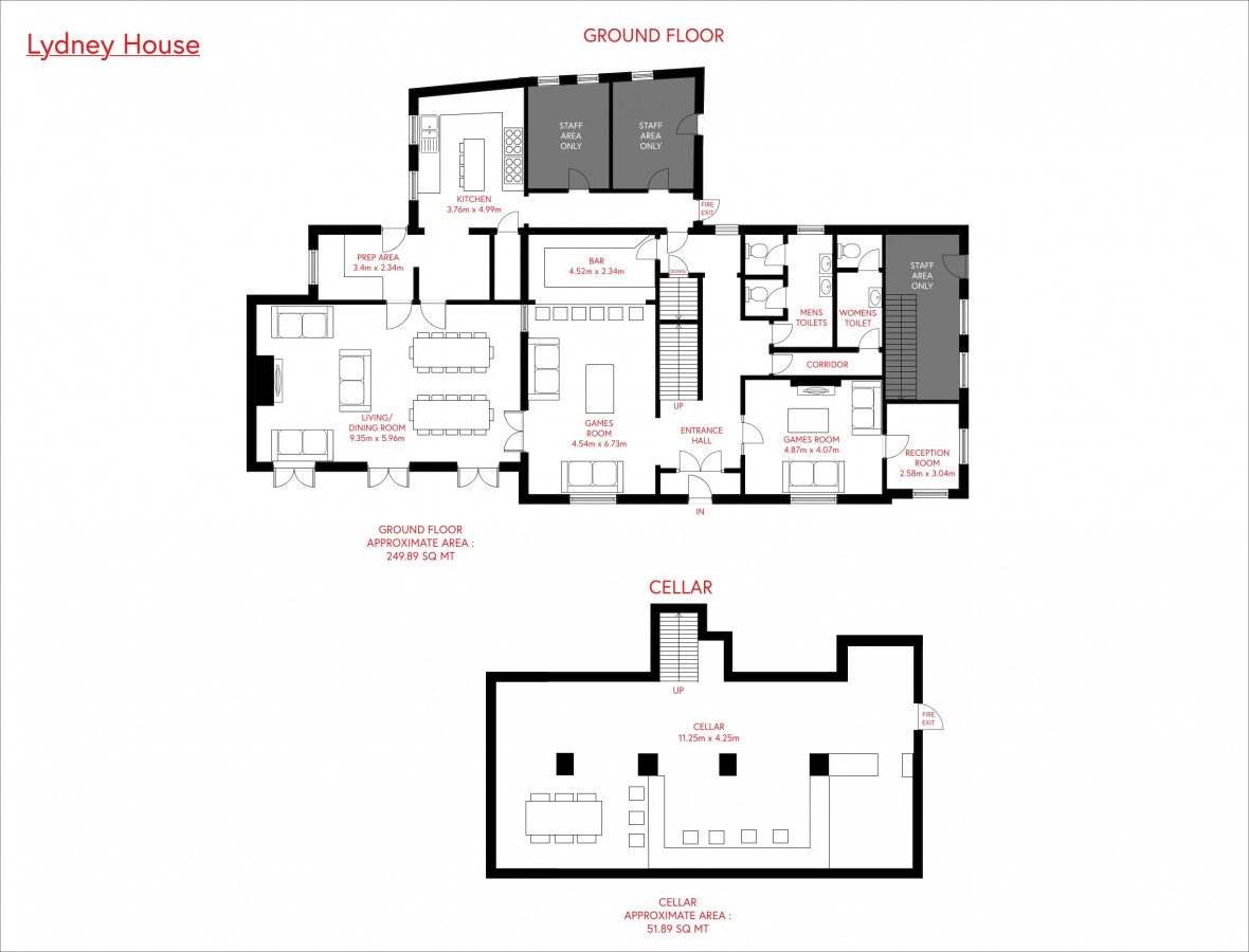 * Private cellar party space with bar area & disco lighting