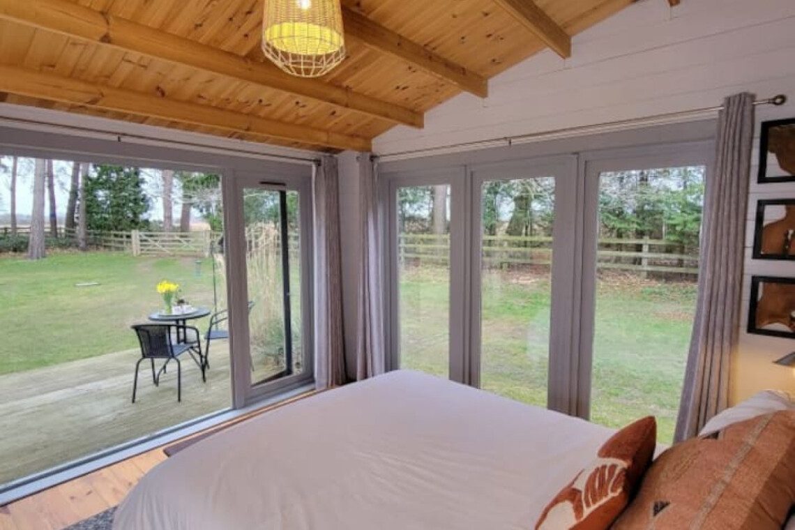 The Retreat’s only neighbours are the horses in paddocks surrounding the cabin and the deer in the field it overlooks. Its glass frontage looks out onto a large enclosed garden and the fields beyond, so you will feel a real sense of peace and space. Straight out of the gate and you will find yourself on a public footpath giving you access to miles and miles of walking, running and cycling. Just 5 minutes along the footpath and you will be on the Marriott’s Way, a 26-mile disused railway running from Norwich to Aylsham. Just 2.5 miles along the footpath is the Market Town of Aylsham with shops, restaurants, pubs and excellent tea rooms.